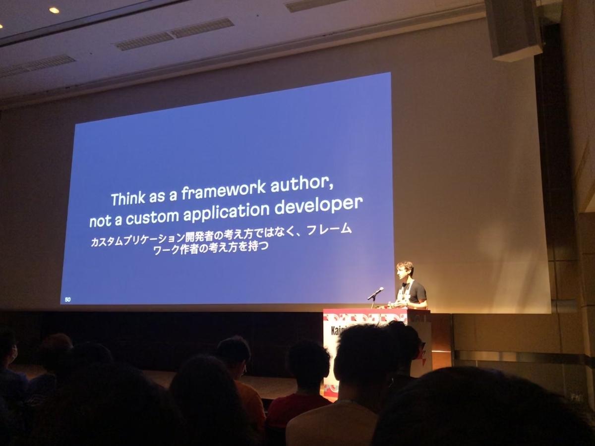 palkan のオープニングキーノートで出てきた「Think as a framework author, not a custom application developer」というフレーズは、今回 Kaigi on Rails 2024 で自分が過ごした全体をとおして一番響いたフレーズでした。